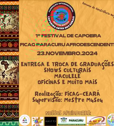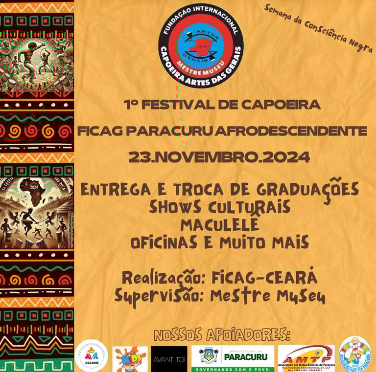 Gostaríamos de expressar nossa profunda gratidão aos patrocinadores e apoiadores que apoiam o 1º Festival de Capoeira FICAG Paracuru Afrodescendente. O seu apoio é fundamental para o fortalecimento da cultura e da prática esportiva em nosso Estado.